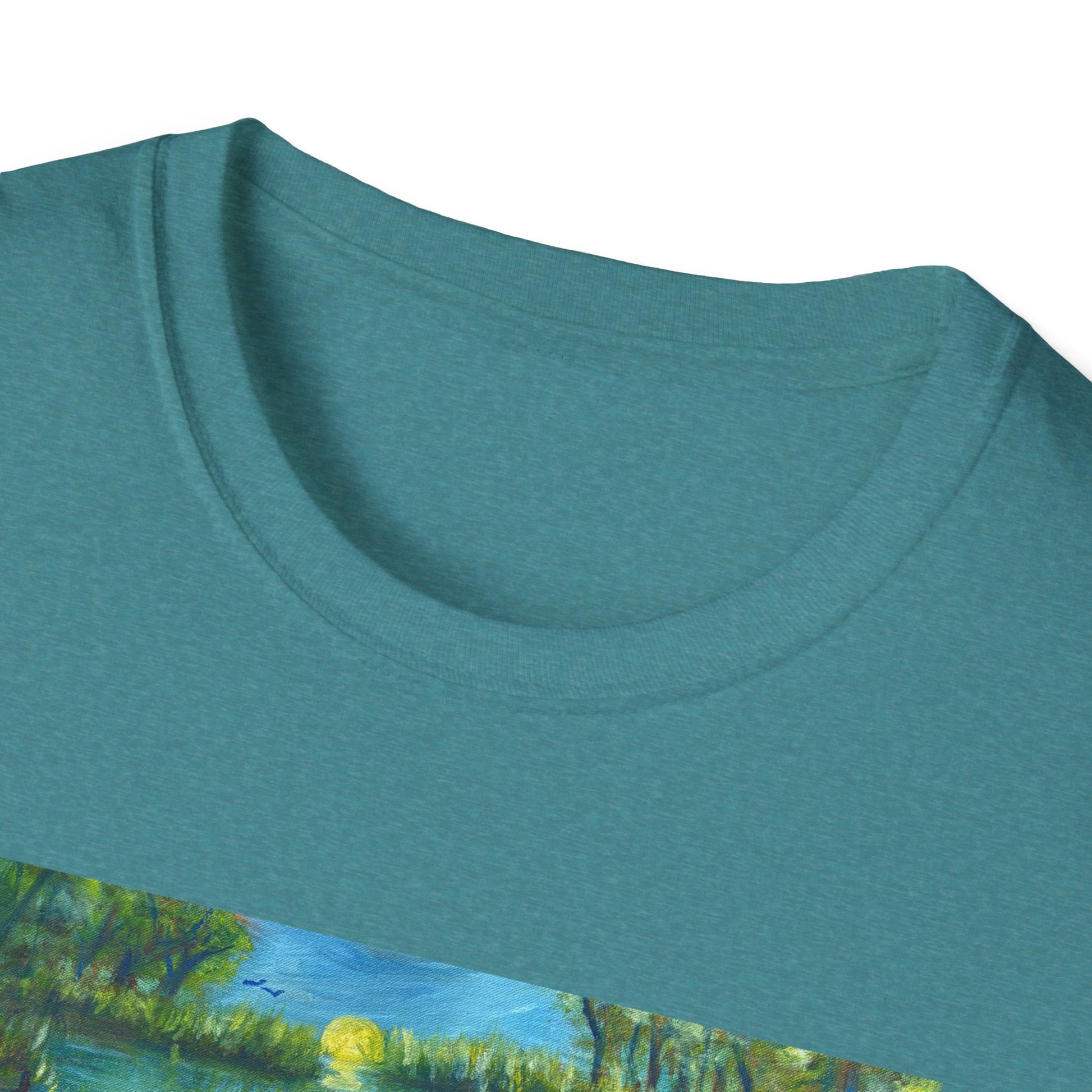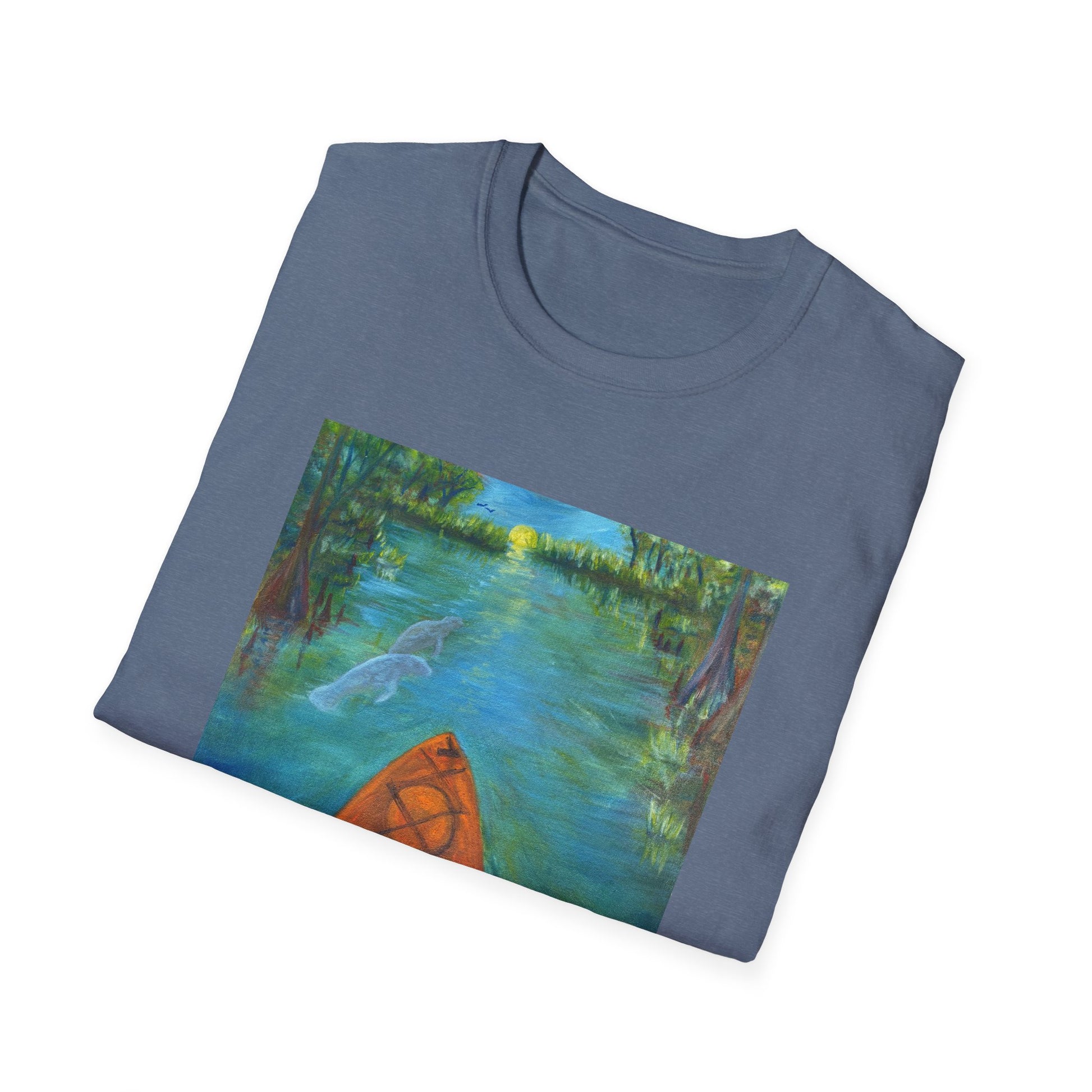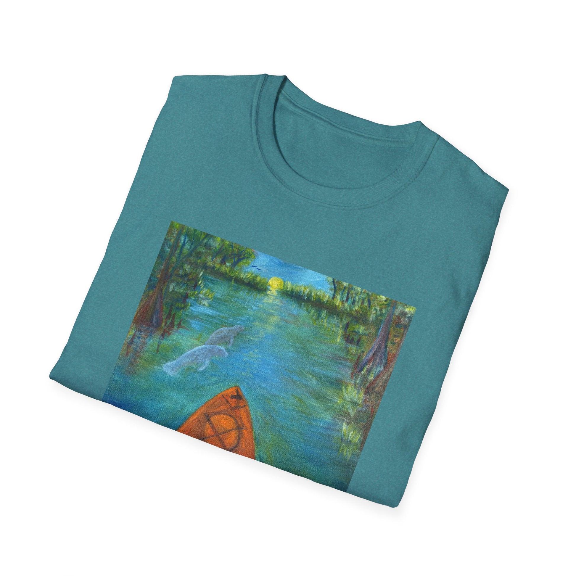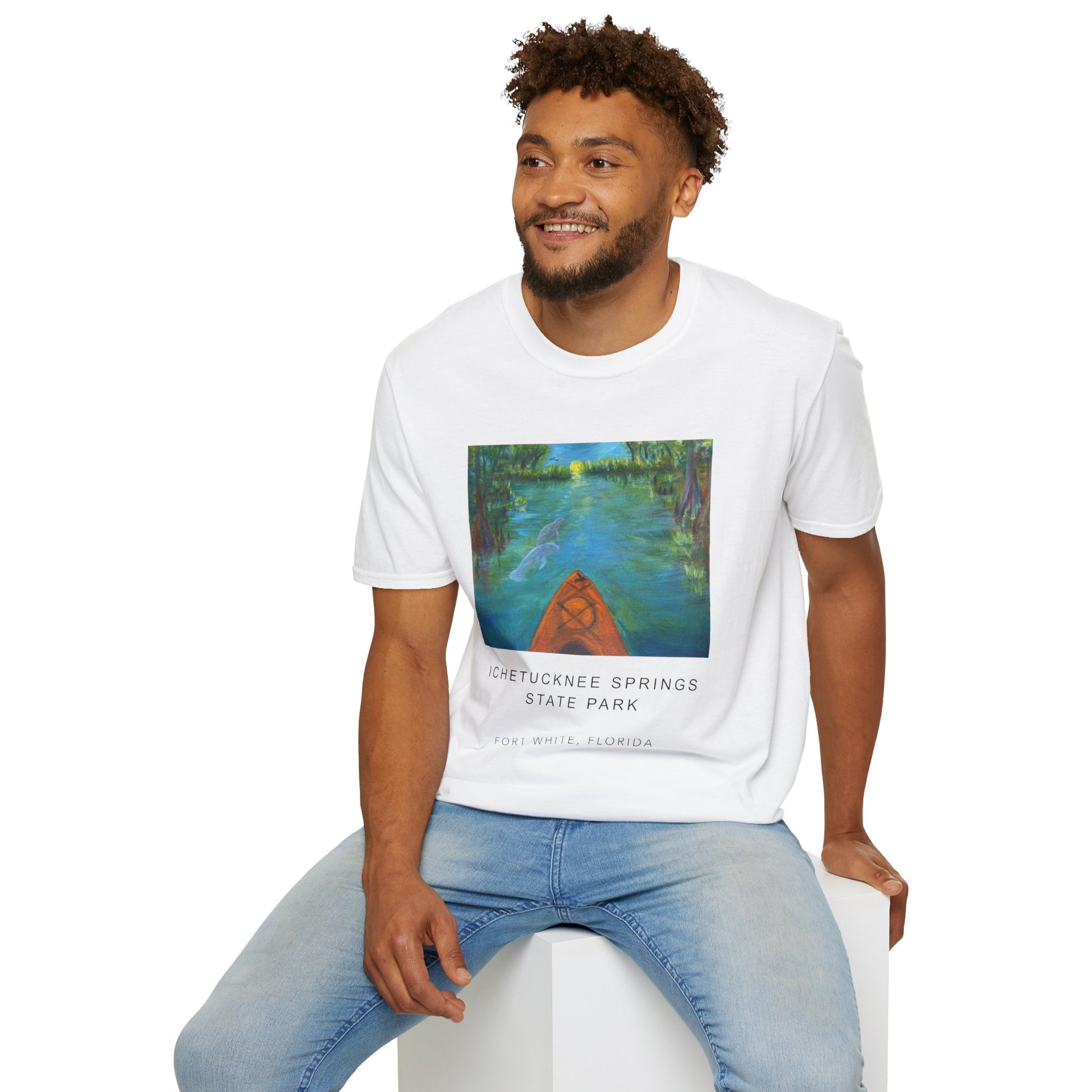 Immerse yourself in the tranquil blues and lush greens of Florida’s wild heart with our Ichetucknee Springs State Park Unisex Softstyle T-Shirt. Featuring a vivid, high-quality print of an original painting of Ichetucknee Springs, this shirt captures the mesmerizing waters, dancing light, and untamed beauty of one of the state's most breathtaking natural springs.