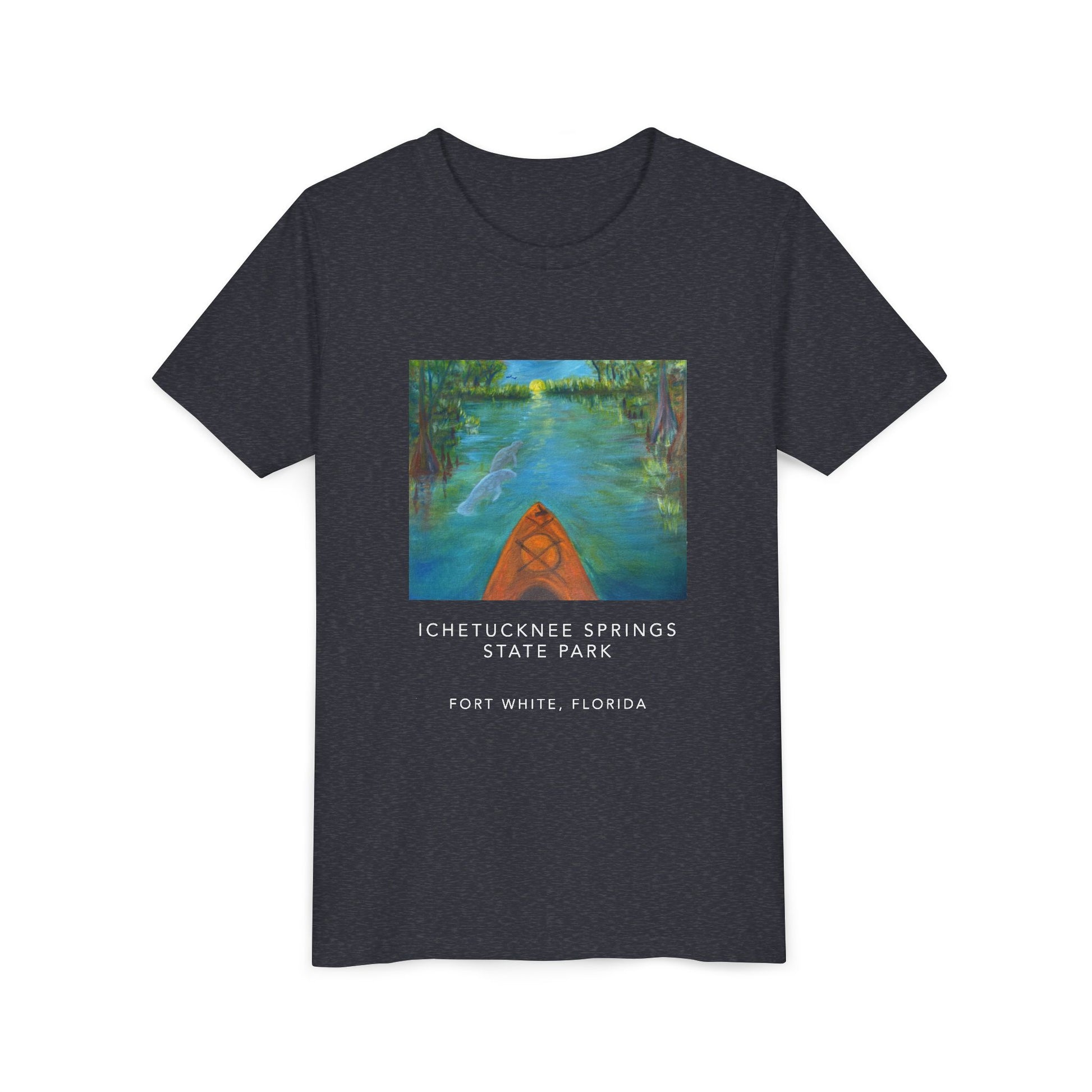 Immerse yourself in the tranquil blues and lush greens of Florida’s wild heart with our Ichetucknee Springs State Park Youth Short Sleeve Tee. Featuring a vivid, high-quality print of an original painting of Ichetucknee Springs, this shirt captures the mesmerizing waters, dancing light, and untamed beauty of one of the state's most breathtaking natural springs.