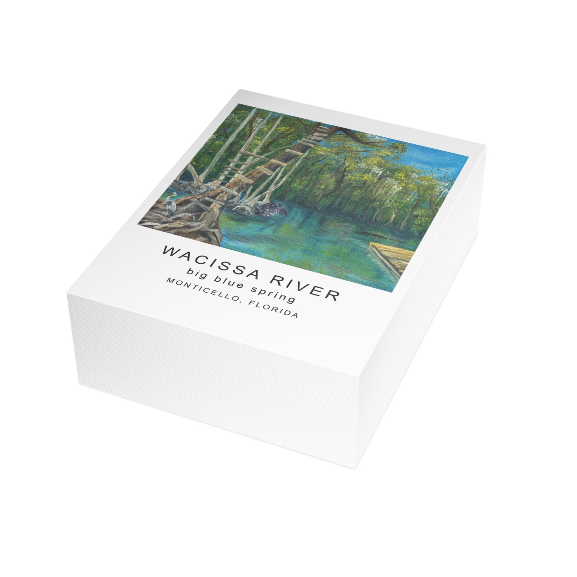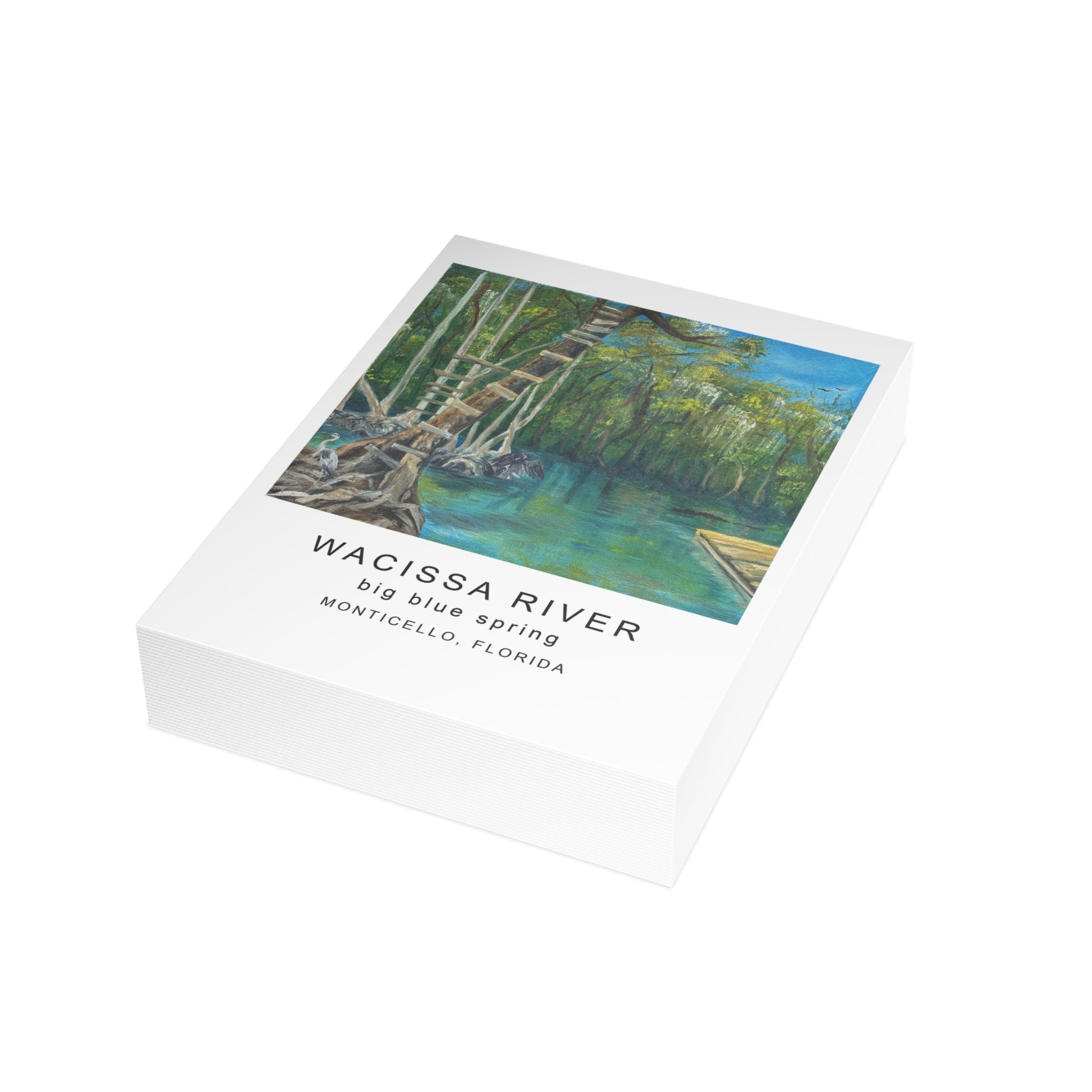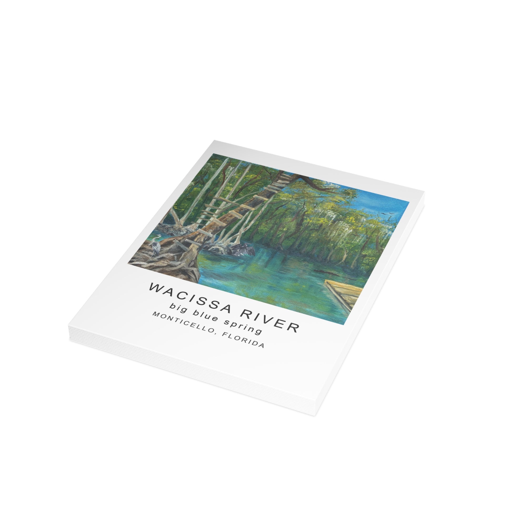 Elevate your space with our stunning Wacissa River Big Blue Spring Postcard Bundle. Immerse yourself in the tranquil blues and lush greens of Florida’s wild heart with our Wacissa River Big Blue Spring Postcard Bundle. Featuring a vivid, high-quality print of an original painting of Big Blue Spring, this print captures the crystal-clear waters, dramatic depth, and untamed beauty of one of the state's most breathtaking natural springs.
