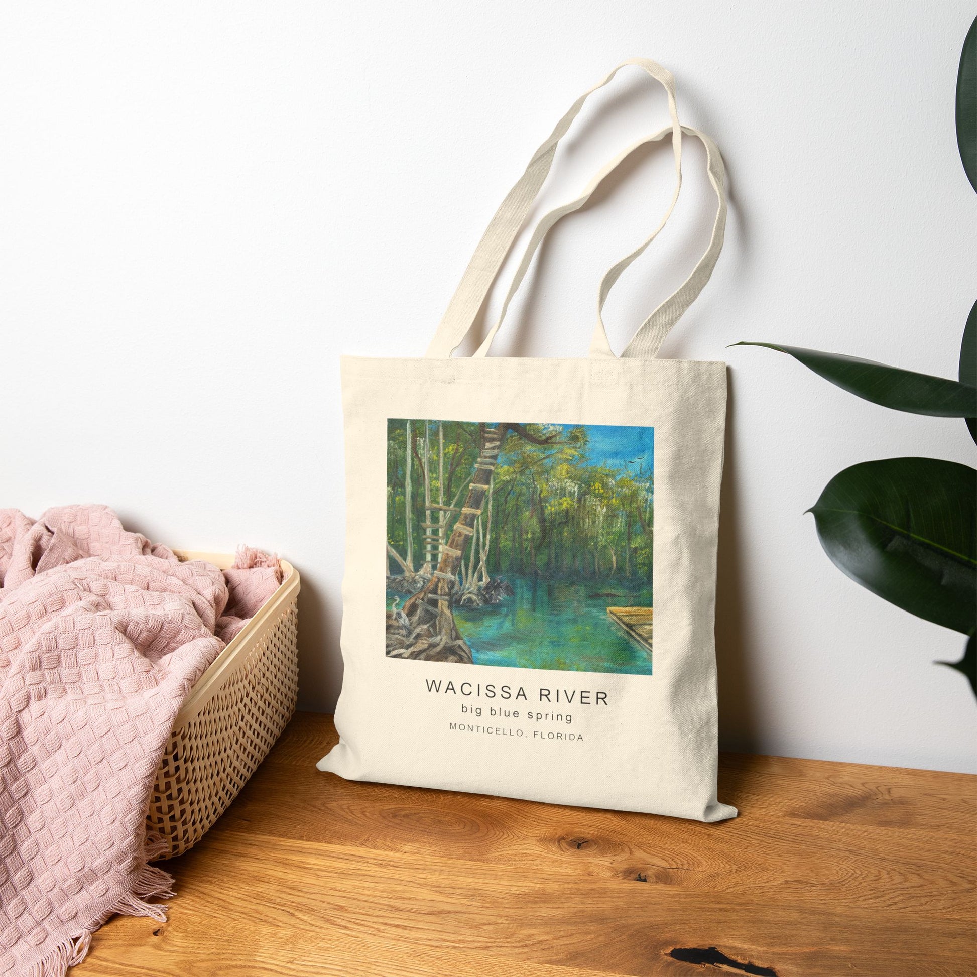 Wacissa River Big Blue Spring Cotton Canvas Tote Bag, Eco-Friendly Bag, Reusable Shopping Tote