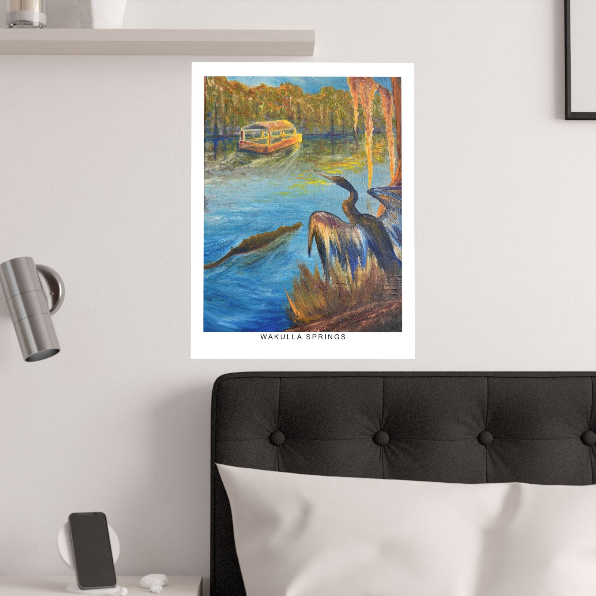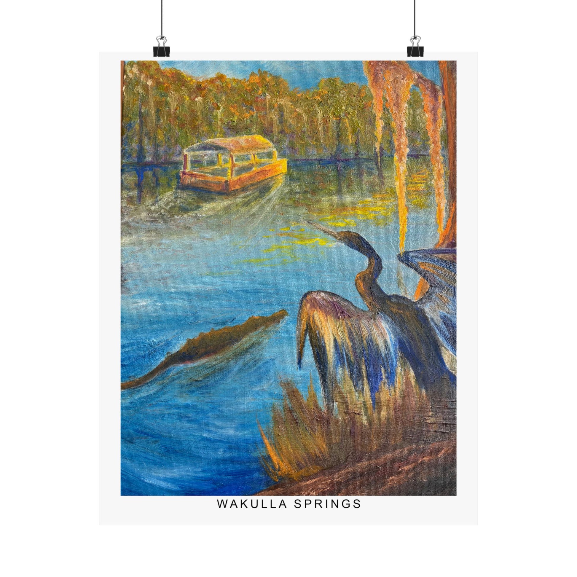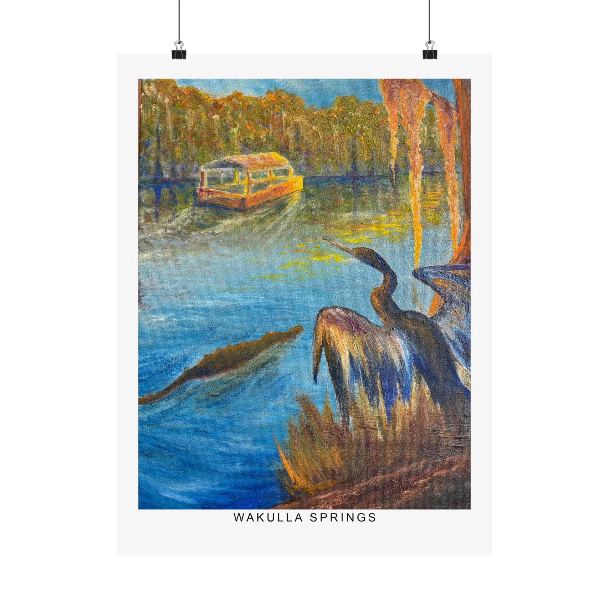 Immerse yourself in the tranquil blues and lush greens of Florida’s wild heart with our Wakulla Springs Anhinga Fine Art Print. Featuring a vivid, high-quality print of an original painting of Wakulla Springs, this print captures the mesmerizing waters, an anhinga, the famous Wakulla Springs boat tour, and untamed beauty of one of the state's most breathtaking natural springs.