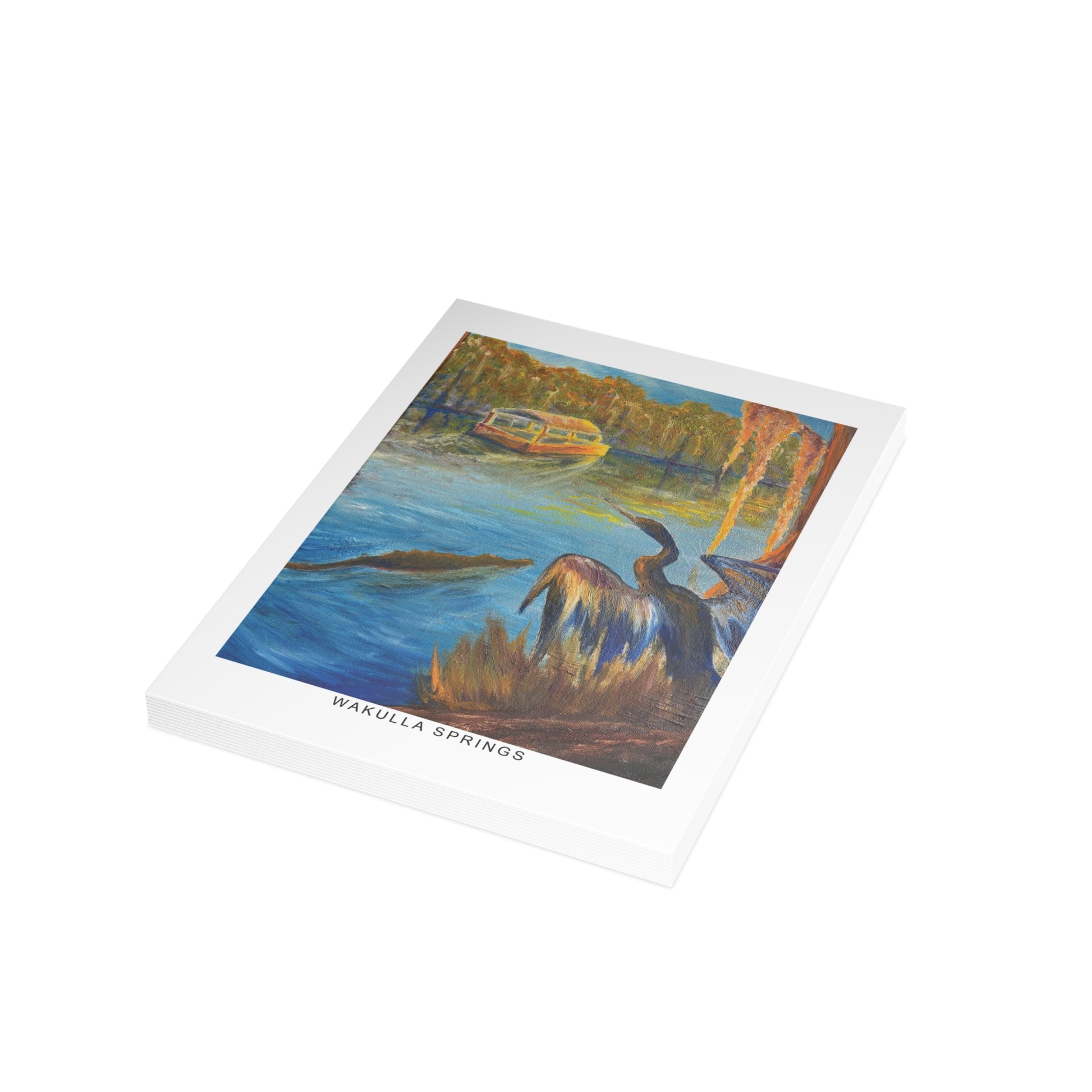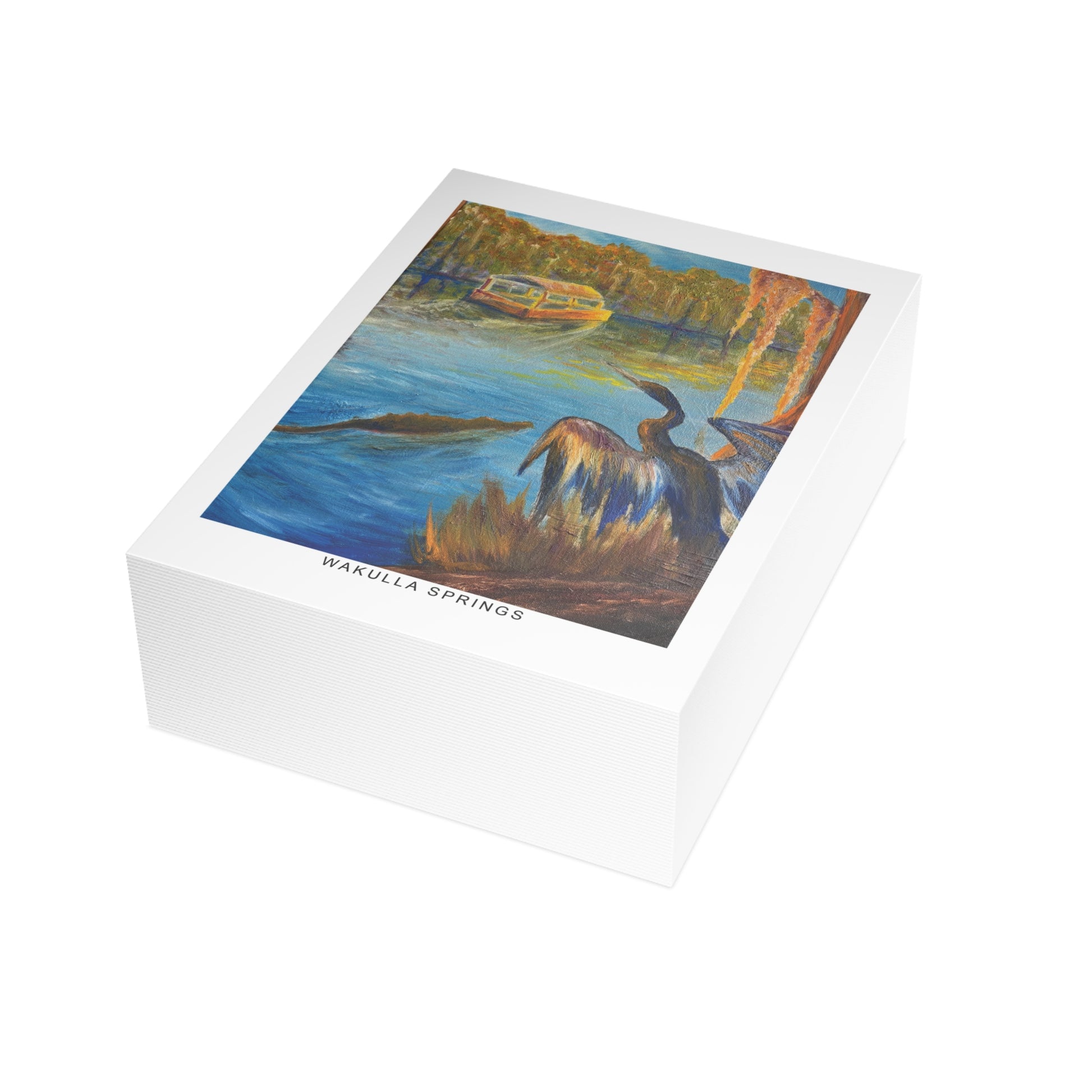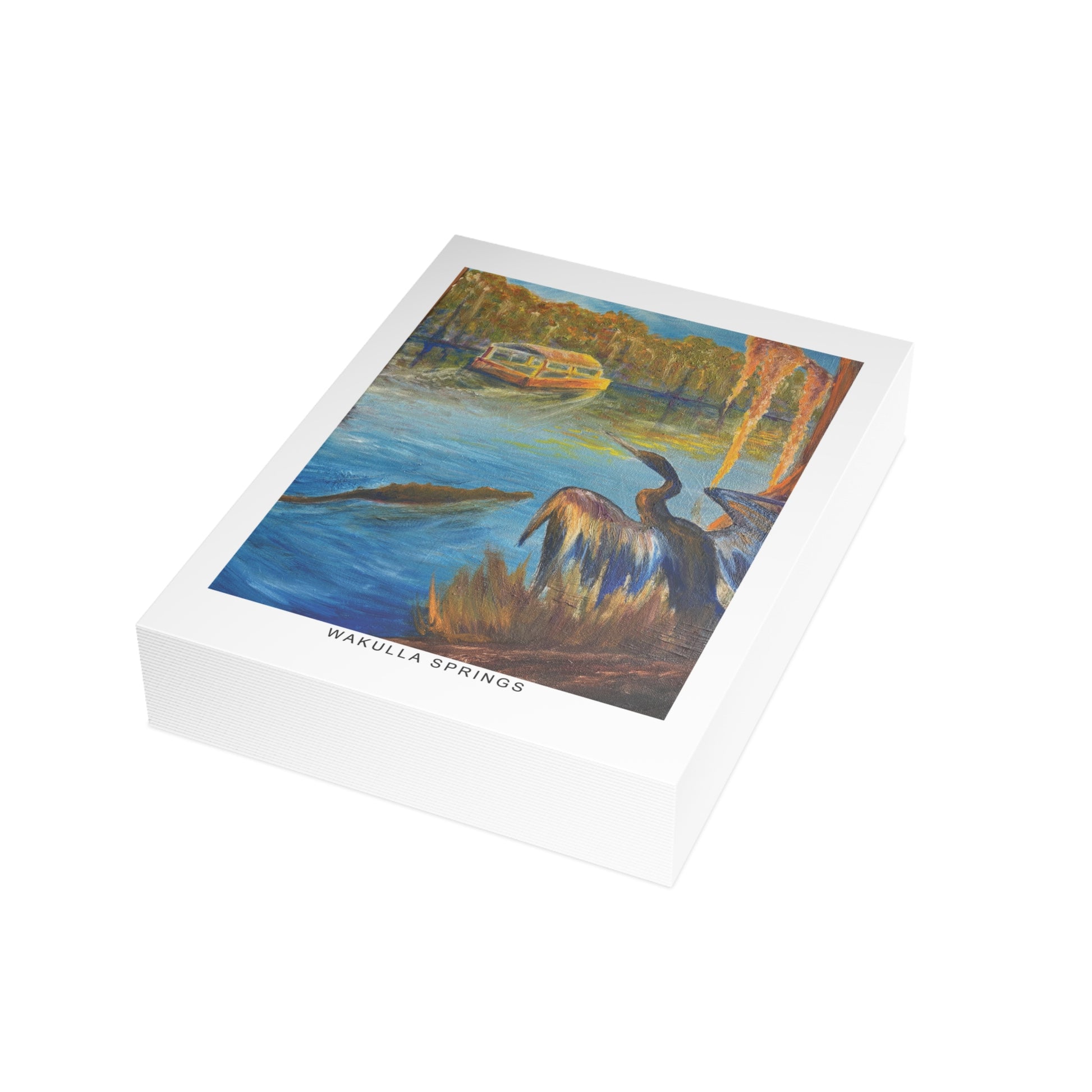 Immerse yourself in the tranquil blues and lush greens of Florida’s wild heart with our Wakulla Springs Anhinga Postcard Bundle. Featuring a vivid, high-quality print of an original painting of Wakulla Springs, this postcard captures the mesmerizing waters, an anhinga, the famous Wakulla Springs boat tour, and untamed beauty of one of the state's most breathtaking natural springs.