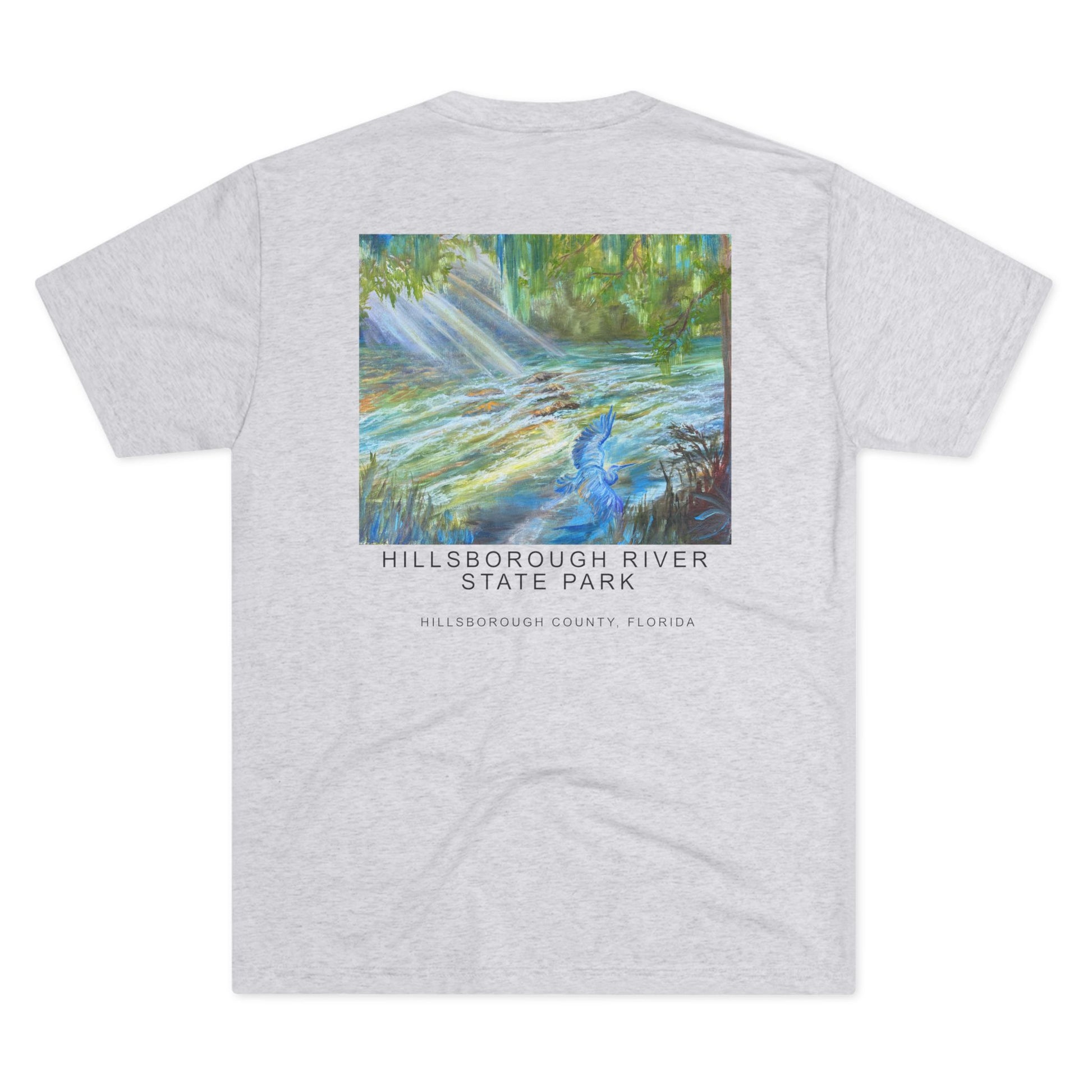 Immerse yourself in the tranquil blues and lush greens of Florida’s wild heart with our Hillsborough River State Park Tri Blend Unisex Shirt. Featuring a vivid, high-quality print of an original painting of Hillsborough River State Park, this shirt captures the mesmerizing rapid waters, dancing light, and untamed beauty of one of the state's most breathtaking natural rivers.